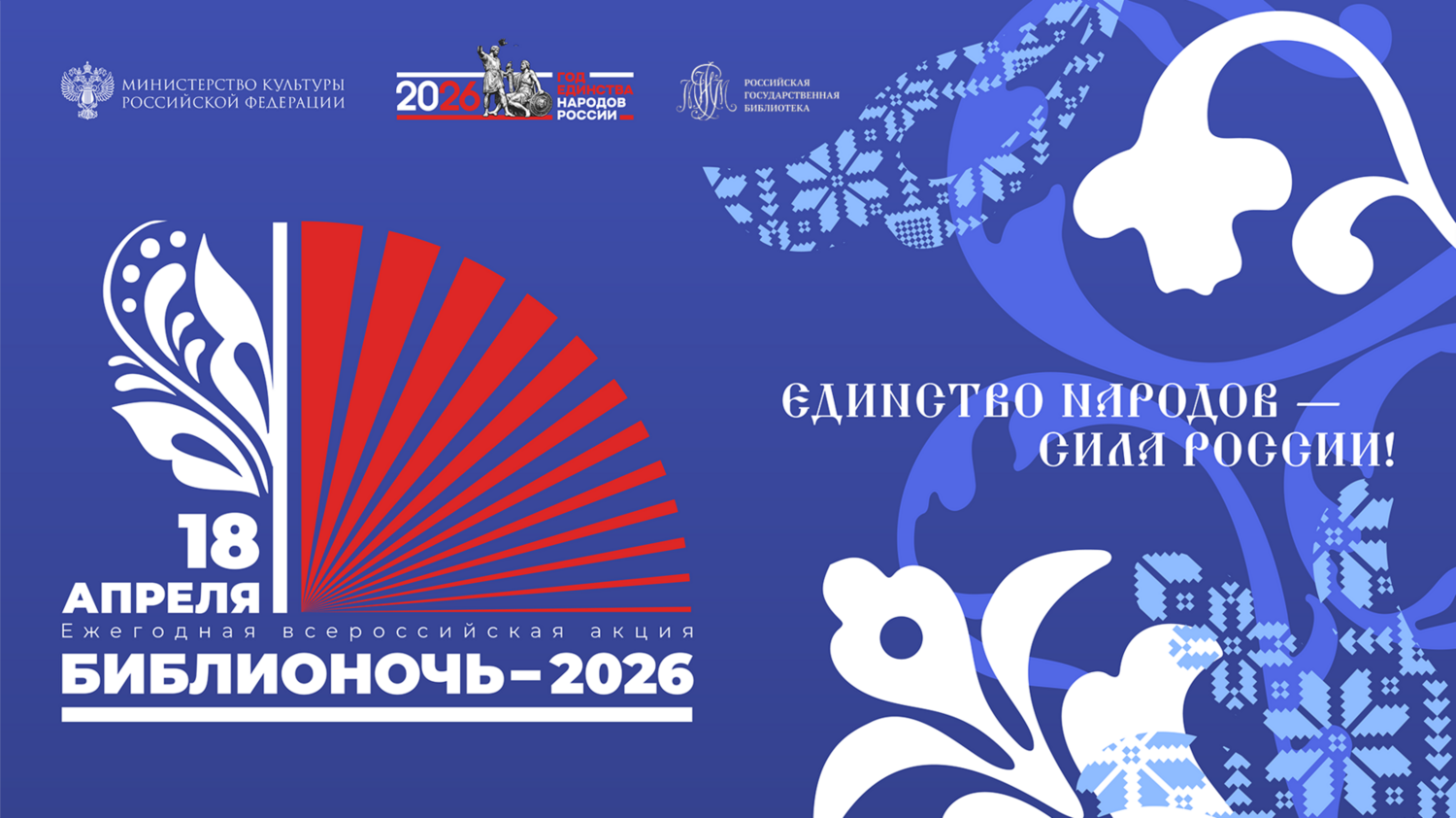 | Ежегодная акция «Библионочь» в 2026 году пройдет в России уже в 15-й раз. Библиотеки, книжные магазины, литературные музеи и культурные центры по всей стране представят специальную программу: экскурсии, лекции, встречи с героями и писателями, поэтические чтения, концерты, книжные выставки. Тема акции в этом году — «Единство народов — сила России!» Во все времена сила нашей страны — сила единства наших народов. Сплоченность, поддержка друг друга, живое любопытство и уважение к общим корням — главная ценность, объединяющая жителей самой красивой и бескрайней страны. Разнообразие культур, традиций, языков и общая многовековая история, сплетаясь, делают нас уникальными. В нашем спецпроекте вы найдете главные события по всей стране, статьи о литературе, подборки стихов и прозы, биографии писателей и кино. Организаторы акции «Библионочь» — Министерство культуры Российской Федерации, Российская государственная библиотека и портал культурного наследия и традиций России «Культура.РФ». | |